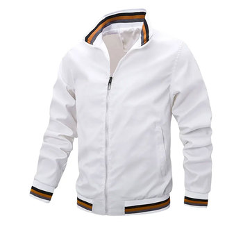 "Người đàn ông của áo khoác trắng máy bay ném bom áo khoác với dây kéo phía trước và dải màu gân HEM mùa đông mặc cho nam giới 2025"